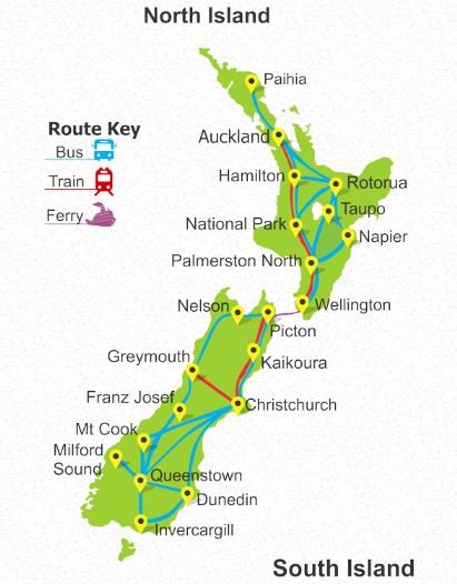 Alternatively, you can use a Scenic Train/Bus Pass, that allows you to travel on New Zealand's long distance national passenger rail & bus travel networks at your own pace, at any time in any direction including ferry travel between North & South Islands.